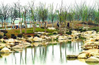 Shanghai goes green. This 3-km "ecological road" leading from the Qingpu-Pingwang Expressway crosses 8 streams and is bordered by a 160-meter-wide greenbelt.