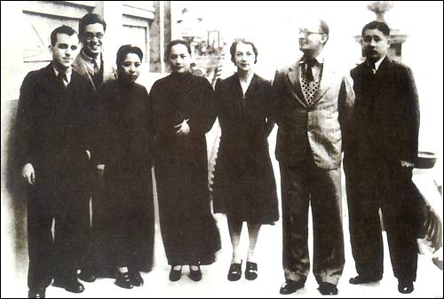 Soong Ching Ling, chairwoman of the Central Committee of the China Defence League, and Liao Chengzhi, director of the Hong Kong Office of the Eighth Route Army, and others in Hong Kong.