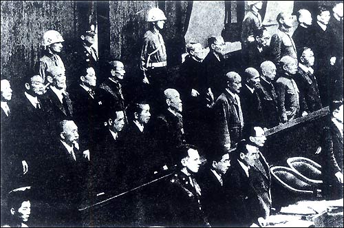 Starting on May 3, 1946, the International Military Tribunal for the Far East tried 28 Japanese first-level war criminals, some of them shown here.
