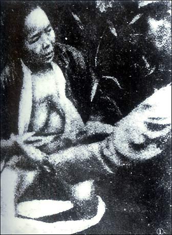 After raping this old woman, Japanese troops force her to disrobe. (photo from a captured Japanese soldier)
