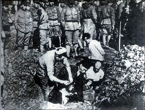 The inhuman Japanese soldiers buried alive many innocent residents.