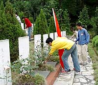 On each Qingming Festival, all cemeteries are crowded with people who came to sweep tombs and offer sacrifices. Traffic on the way to the cemeteries becomes extremely jammed. The customs have been greatly simplified today. After slightly sweeping the tombs, people offer food, flowers and favorites of the dead, then burn incense and paper money and bow before the memorial tablet.