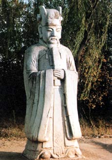 After he died, Emperor Qin Shi Huang built a bronze statue of Ruan Wengzhong in commemoration. It was placed in Xianyang Palace and from then on, bronze or stone statues of humans were called Weng Zhong. The stone human figures of civil officials and meritorious officials placed before the tombs symbolized real civil and military officials guarding the tombs.