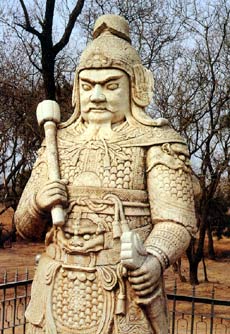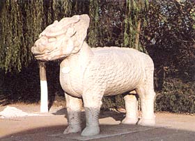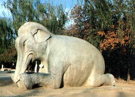 In the Qing Dynasty, such stone animals as qilin, pixie (exotic animal with horns), elephants and horses were placed in front of the tombs. In the Tang Dynasty, lions, horses, oxen, black birds and stone figures of civil officials and warriors were favored. In the Northern Song Dynasty, stone animals --elephants, horses, sheep, tigers, lions, black birds, and stone figures of civil officials and military officials also were lined in front of imperial tombs.