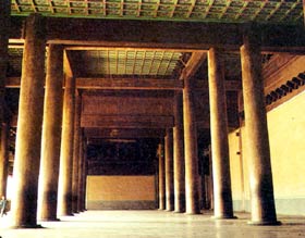The underground palace occupies a total of 1,195 square meters. The vaulted halls are built of stone, without a single beam or column. To avoid damaging the marble floor, the surface from the antechamber to the rear hall was covered with thick planks for the hearse to roll on when it entered the underground palace, thick planks that can still be seen today.