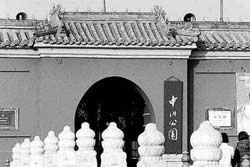 Entering through the main southern entrance, one comes to a large vestibular pavilion with long corridors running off to the east and west. In front of the pavilion is a white marble memorial archway erected by the Qing government to commemorate the German Minister Baron von Kettler, who was killed during the Yihetuan Movement ("Boxer Rebellion") in 1900. This archway originally stood outside the western entrance to the Xizongbu Alley, but after Germany's defeat in World War I, it was removed to the Zhongshan Park and inscribed with the words "Triumph of Righteousness"(Gongli Zhansheng). After 1949 it was rein scribed in Guo Moruo's handwriting with "Defeat the Peace"(Baowei Heping).