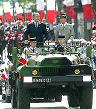 French President Jacques Chirac stands in a command car during ceremonies marking the 60th anniversary of the end of World War II on the Champs Elysee in Paris May 8. (Xinhua/Reuters Photo)