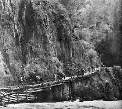 The plank road along the cliffs of Bailong River where the Red Army passed.