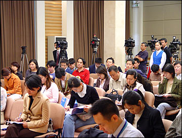 Reporters at a press conference Monday morning.