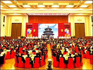 Delegates at the opening ceremony of the 2005 Fortune Global Forum held in Beijing Monday.