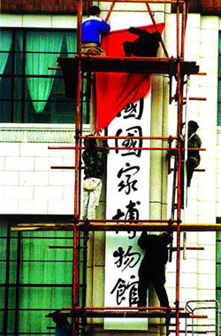 The Museum of Chinese History displays three main periods of Chinese history. The first, the Primitive Society, spans from 500,000BC to 4,000BC. The exhibits in the Slavery Society section cover the time from 2,100BC to 475BC and the Feudal Society exhibits focus on the period from 221BC to 1911.Many of the items on display are national treasures and precious rarities. Examples include the famous fossil remains of Yuanmo Man and Beijing Man, the remarkable painted pottery and jade wares of the Neolithic Age, the Simuwu Rectangle Ding (a kind of vessel) of the Shang Dynasty (cast over 3, 000 years ago and weighing 832. 84kg -- the heaviest ancient bronze ware in the world), the Shang Dynasty square bronze Zun (wine vessel) decorated with four sheep heads and the large inscribed Western Zhou Dynasty (11th century BC - 771BC) bronze Pan (water container). Other exhibits include a gold-inlaid bronze tally in the shape of a tiger (this was used by Emperor Qinshihuang for military affairs), a Han Dynasty (206BC-220AD) jade burial suit sewn with gold thread, magnificent Tri-colored Glazed Pottery of the Tang Dynasty (618-907), world-renowned Song Dynasty (960-1279) ceramics, and a rare bronze human figure marked with acupuncture points. Such treasures as these depict the rich and disparate evolution of the Chinese civilization.Since 1992, about 100 short-term exhibitions have been held in the National Museum of Chinese History. Exhibitors have included both international and domestic organizations, as well as private individuals.