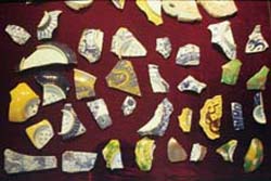 The "Touching History" section of the museum encompasses three themes. The first is representative porcelain of the Tang (618-907), Song (960-1279), Yuan (1271-1368), Ming, and Qing dynasties, in chronological order. The second is Qing Dynasty Tangfu style -- the name of a private residence or study depicted on the porcelain, produced during the reign of Emperor Kangxi. The third is Qing Dynasty Hua style, wherein scripts, signatures, and symbols are expressed in patterns, also produced during the reign of Emperor Kangxi. Joining together fragments of ancient porcelain gives one a retrospect of history, as well as a better understanding of the material itself.
