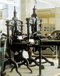 The hall of modern printing outlines developments in printing technology in modern times. The first section is devoted to the evolution of four types of printing technology -- relief, planography, intaglio, and stencil printing. The second part is mainly concerned with developments and achievements in printing since the founding of the People's Republic of China in 1949.