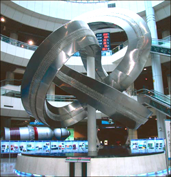 Exhibition hall A: The exhibits of ancient Chinese technology introduce astronomy, the compass, gunpowder, bronze smelting and casting, papermaking and printing. The displays of modern science introduce technology-electromagnetism, mechanics, heat, acoustics, optics, nuclear technology and information technology. There are activities organized to encourage the participation of the visitors, encouraging them to explore and practice science via exhibits.