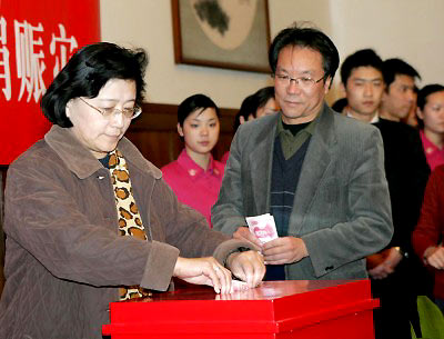 Office workers of the Standing Committee of China's National People's Congress donate money for nations hit by the Indian Ocean tsunami, during an activity held in Beijing Jan. 4, 2005.