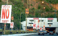 Meanwhile, the opposition also held similar but smaller events in the eastern part of Caracas on Sunday, urging people to vote "Yes" to recall Chavez.
