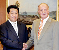 The king met with Jia, chairman of the National Committee of the Chinese People's Political Consultative Conference (CPPCC) at the Royal Palace prior to the Chinese leader's departure for Portugal following a four-day official good-will visit to Spain.