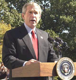 "He's claiming I misled America about weapons when he, himself, cited the very same intelligence about Saddam weapons programs as the reason he voted to go to war," Bush said. Citing a lengthy Kerry quote from two years ago on the menace Saddam could pose, Bush said: "Just who's the one trying to mislead the American people?"