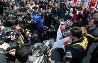 On Monday, two South Koreans each lopped off a finger during a rally in front of the embassy in protest of Japanese claims to the islets.