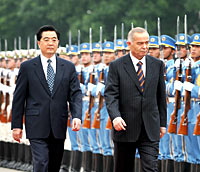 Talking about the regional situation, Hu said China is willing to try, with other countries in the region and within the framework of Shanghai Cooperation Organization (SCO), to fight the "three evil forces" of terrorists, separatists and extremists to safeguard peace and stability in the region.