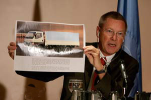 "There was no indication of an underground explosion," added Mehlis, who showed the reporters a picture of the truck, a white Mitsubishi.