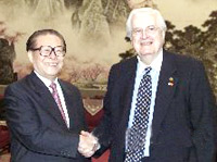 During a meeting with a US delegation headed by Henry J. Hyde, chairman of the international relations committee of the US House of Representatives, Jiang said the Taiwan issue was crucial to China and to Sino-US relations, and that there was only one China in the world.