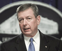 Ashcroft announced the change, which had been debated by senior officials for several days, at a Justice Department news conference along with Ridge and FBI Director Robert Mueller. Beginning March 1, Ridge will have authority to make these announcements as part of the law creating the new Homeland Security Department.