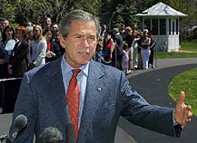 Secretary Powell reiterated concerns expressed over the weekend by President Bush that Syria has been developing weapons of mass destruction, particularly chemical weapons. "And we believe, in light of this new environment, they should review their actions and their behavior, not only with respect to who gets haven in Syria and weapons of mass destruction, but especially the support of terrorist activity," Mr. Powell said.