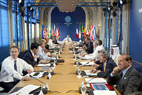The annual summit of industrialized nations brought together the leaders of the United States, Britain, France, Germany, Italy, Japan, Canada and Russia at a spa on the banks of Lake Geneva. They were joined on the opening day by leaders from Saudi Arabia, Egypt, Africa and developing countries such as China, India and Mexico -- a move intended in part to answer the criticism of anti-globalization protesters that the G-8 was a rich country's club insensitive to the needs of poorer countries.
