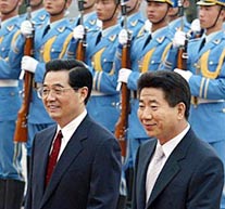 This is also the first meeting between Hu and Roh since they both took office.