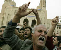 A group of several hundred people gathered after the Friday noon prayers in protest of the US soldiers' violation of the Qoran, or Muslim holy book, during the search.