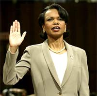 Rice slid into the witness chair before an audience that included relatives of victims of the attacks, in which terrorists flew hijacked jetliners into the World Trade Centre and the Pentagon.