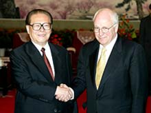 Jiang Zemin, chairman of the Central Military Commission, told visiting US Vice President Dick Cheney, that he hopes that the US could adhere to its commitment on the Taiwan issue, and not to send wrong signals to the "Taiwan Independence" forces.