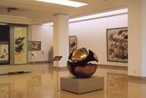 There are totally 13 exhibition halls in the gallery, and the three collective anti-ultraviolet radiation colors fluorescent lamps are illuminating in the halls. The acreage of the round hall is 480 square meters that is suited for hanging the large-sized art works. The acreages of the east and west side halls in the first floor are 470 square meters respectively that are equipped with large glass exhibition cabinets. While each of the