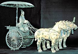 Pit One, first discovered in 1974, measures 230 meters long and 62 meters wide, covering over 14,000 square meters. It contains more than 6,000 terracotta warriors, which, with their individual features and facial expressions, line up in battle-readiness, creating an awe-inspiring effect. The pit also buried a large number of chariots, weapons and other precious relics, of which some 10,000 metal weapons were unearthed. An unearthed bronze horse-driven chariot is the largest bronze ware ever found in the world.