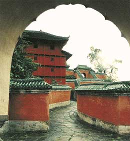 The most distinguishing feature of Mount Wudang is the large Taoist architectural complex. Making full use of the terrain featuring towering mountains and deep valleys, more than 20,000 rooms were built in spots where they most harmoniously blended with the nearby woods, rocks and streams so that the man-built structures and natural elements complimented each other. The Gold Hall, built in 1416 on the top of the Heavenly Pillar Peak, is the largest copper structure existing in the country. It is 5.54 meters tall and 5.8 meters wide. The walls were cast separately, but precisely and well knit. All the statues of god and sacrificial vessels are made of copper. Although 500 years have past, they still glitter as before.