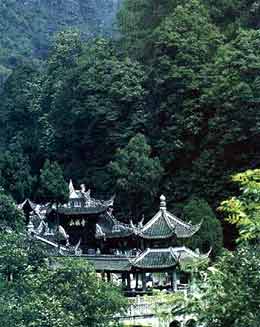 Mount Qingcheng and the Dujiangyan Irrigation System are two state-level scenic attractions in China. Both are located west of Chengdu, the capital city of Sichuan Province. Mount Qingcheng, known as the fifth among the most famous Taoist mountains of China, is one of the places where Taoism came into being. With the snow-covered Mingshan Mountain in the background and the Chuanxi Plain in front, the evergreen Mount Qingcheng covers an area of over 120 kilometers. Altogether it has 36 peaks covered with thick forests of trees and bamboo, 72 caves and 108 scenic spots. It gets its name from the way the peaks resemble the structure of a city wall. The name Qingcheng means green city. Damian Mountain is its main peak and the Master's Cave (Tianshitong) serves as its pivot. The mountain is well known for its serene scenery that contains halls and temples shaded by forests and enhanced by interesting legends and anecdotes.