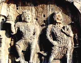 The Longmen Grottoes, located near Luoyang, Henan Province, are a treasure house of ancient Buddhist cave art. The grottos were hewed and carved during the Northern Wei Dynasty (386-534), when the rulers relocated their capital at Luoyang near the end of the 5th century. At that time Buddhism was spreading east into China and was venerated by the imperial court. The Buddhists adopted the practice of carving rock temples, dedicated to the Buddha.
