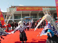 "The straight bus service is a historic event and is opening a new avenue between the two neighboring countries," Ram Narayan Singh, minister for labor and transport management, told Xinhua.