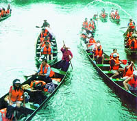 Visitors can board a small boat at the dock of Pucaotang Lake. To protect the environment, and to keep the river water of Puzhehei clear and pure, powerboats are not allowed on the lake so the boats are rowed by local people.