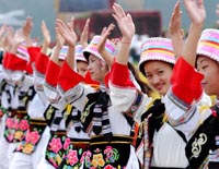 Girls in the Yi minority's costume dance in the Kunming World Expo Garden in Southwest China's Yunnan Province during a ceremony held Sunday to start a local tourism programme. More tourism programmes are expected to follow to lure visitors from home and abroad.
