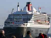 The world's largest cruise ship, the $800 million Queen Mary 2, set off across the Atlantic on its maiden voyage from Southampton, in southern England, January 12, 2004.