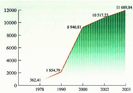 Avant la fondation de la République populaire de Chine en 1949, l'économie chinoise était particulièrement arriérée. Aujourd'hui, elle est devenue l'une des grandes puissances économiques du monde dotées du plus fort potentiel de développement. Dans l'ensemble du pays, la vie du peuple est parvenue à un niveau de vie relativement aisée. Pendant 22 ans après la réforme et l'ouverture en 1979 en particulier, l'économie chinoise a connu un développement rapide sans précédent. Alors que l'humanité est entrée dans le XXIe siècle, l'économie chinoise a continué à se développer de fa?on stable et rapide. En 2003, le produit intérieur brut (PIB) a atteint 11 689,84 milliards de yuans, soit un rythme d'accroissement de 9,1%.