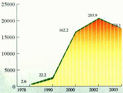 En 2003, à cause du SRAS (Syndrome respiratoire aigu sévère) dans la première moitié de l'année, les principales normes économiques du tourisme chinois ont enregistré, pour la première fois depuis les années 90 du XXe siècle, des chiffres négatifs. A partir du premier mai 2003, les départements concernés comme le ministère des Finances, l'Administration nationale des affaires fiscales, etc. ont pris une série de mesures d'aide comme la réduction et l'exemption des imp?ts, le crédit d'escompte, etc. à l'égard du secteur touristique. Lorsque le SRAS a été enrayé, le marché touristique intérieur fut rapidement réanimé dans le troisième trimestre. Et les déplacements des touristes étrangers en Chine ont recommencé à prendre leur essor. A la fin de septembre, le nombre de touristes étrangers en Chine a augmenté de 2,17% par rapport à la même période de l'année précédente, redressant ainsi une situation négative durant six mois de suite depuis mars. Au mois d'octobre, le nombre de touristes étrangers en Chine a dépassé celui de la même période de l'année précédente. Les recettes du tourisme chinois ont commencé à enregistrer une croissance stable.