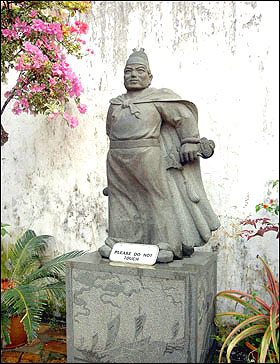 La statue de Zheng He en uniforme militaire, dans le temple San Bao (Trois trésors) à Malacca construit à la mémoire de Zheng He.