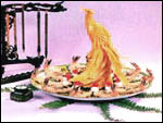 Particularit?: la crevette tendre et croustillante pr?sente une forme en queue de ph?nix.