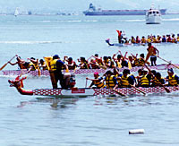 Chaque année, lors de la fête des Bateaux-Dragon, dans toutes les régions on organise une course de bateaux-dragon.Une fois le signal donné, les rameurs canotent de concert au son des tambours et les bateaux en forme de dragon avancent à toute allure vers le fil d'arrivée. La légende dit que ce jeu date du moment où l'on cherchait en bateau Qu Yuan, mais selon les recherches scientifiques, c'était une activité à la fois religieuse et divertissante à l'époque des Royaumes Combattants (475-211 av. J.-C.). Depuis des millénaires, ce jeu s'est popularisé non seulement dans les diverses régions de Chine y compris Taiwan et Hongkong, mais s'est introduit également au Japon, au Vietnam et dans d'autres pays voisins voire en Grande-Bretagne. A présent, il est devenu un sport nautique traduisant à la fois la tradition populaire et la modernité. En 1980, la course de bateaux-dragon a figuré sur la liste des épreuves de compétition sportive nationale de la Chine. La Coupe Qu Yang de course de bateaux-dragon est organisée chaque année.