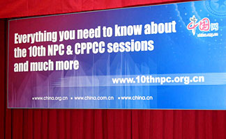 Das Pressezentrum der 3. Tagung des 10. Nationalen Volkskongresses (NVK) und des 10. Landeskomitees der Politischen Konsultativkonferenz des Chinesischen Volkes (PKKCV) ist kürzlich in Betrieb genommen. In der Chinesischen Kongresshalle für Wissenschaft und Technik gelegen, wird das Pressezentrum w?hrend der 3. Tagung des 10. NVK und des 10. Landeskomitees der PKKCV in- und ausl?ndischen Journalisten relevante Informationen anbieten. Die staatliche Nachrichten-Webseite China.org.cn wird im Pressezentrum erforderliche Dienstleistungen zur Verfügung stellen.