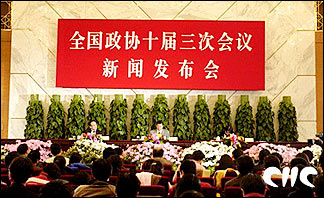 Heute Nachmittag um 15.00 Uhr fand die erste Pressekonferenz der 3. Tagung des 10. Landeskomitees der Politischen Konsultativkonferenz des Chinesischen Volkes (PKKCV) in der Gro?en Halle des Volkes statt. Der Sprecher Wu Jianmin hat in- und ausl?ndischen Journalisten die Tagesordnung der Tagung vorgestellt. (China.org.cn, 2. M?rz 2005) |