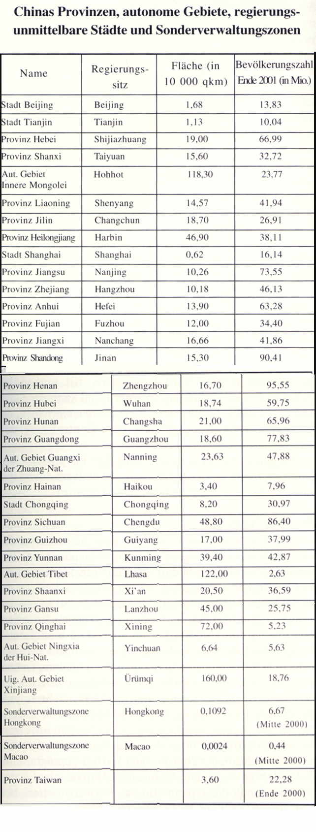 Gegenwärtig gibt es in China 23 Provinzen, f??nf autonome Gebiete,